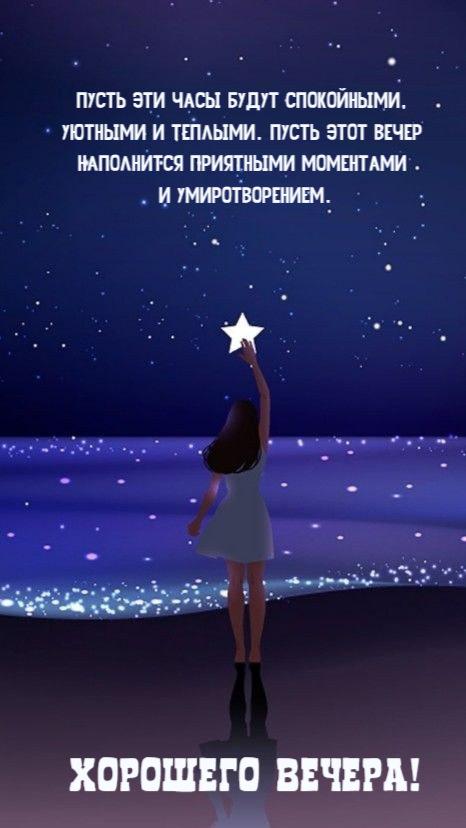 Желаю, чтобы вечер был наполнен приятными моментами.Отличного вечера!